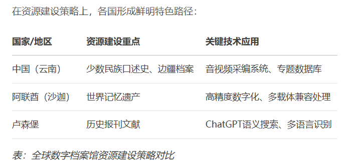 數字檔案館建設呈現多元化戰略定位與差異化實施路徑。從戰略目標看,可分為三類模式: